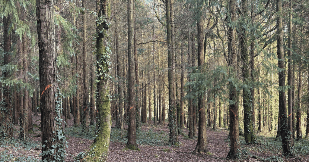 Many of the woodland scenes in Jasper and the Spring Surprise were inspired by walks like this. Places where the trees are tall and sheltering, the ground is soft with needles and leaf litter, and small details reward those who slow down enough to notice them.