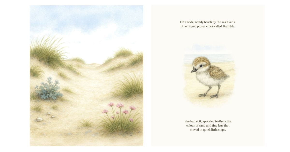 Bramble and the Beach Nest is a children’s beach book that follows a tiny ringed plover chick as he discovers life along the shore.