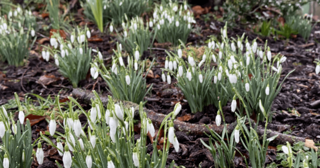 - Snowdrops, often flowering from late winter